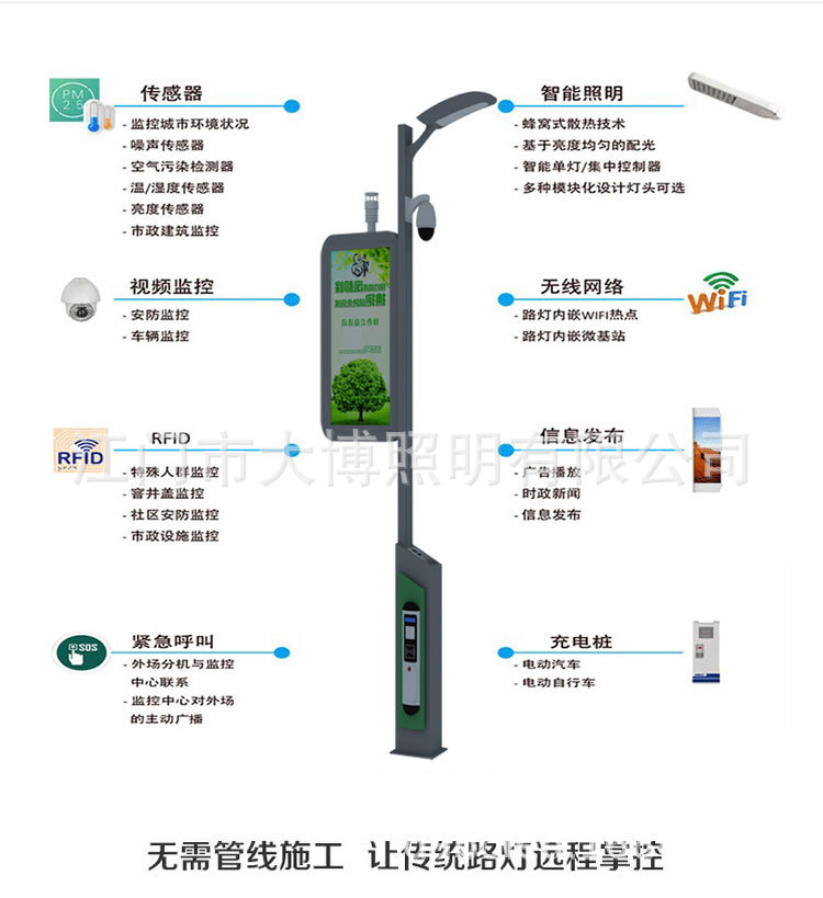 LED智慧路燈 定制小區廣場公園充電樁WIFI監控廣告一體化智能路燈