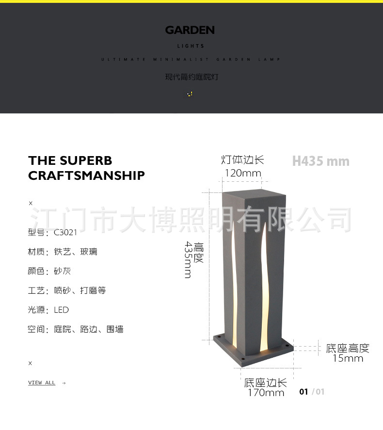 LED方形草坪燈10W戶外簡約四面光影現代特色鐵藝防水廠家批發