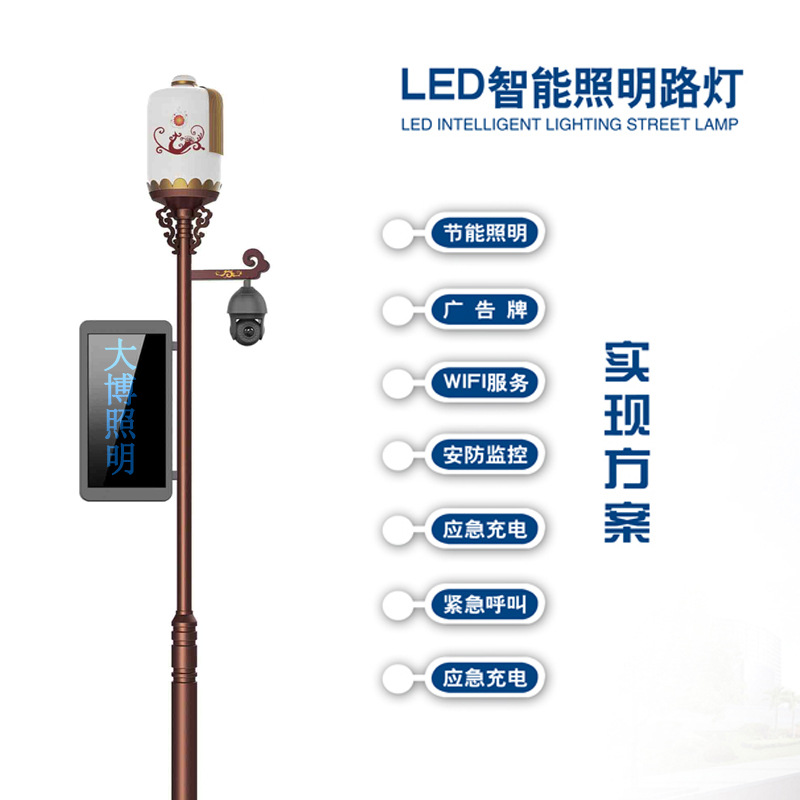 新款智能庭院燈 LED照明投影儀充電樁廣告屏環(huán)境監(jiān)控WIFI智慧路燈